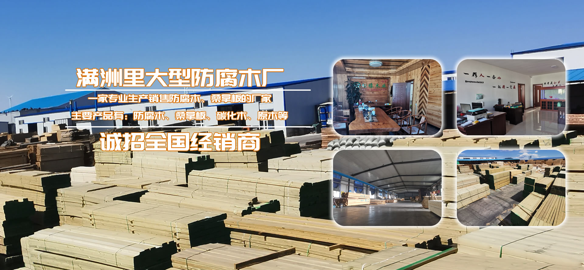 滿洲里松緣木業有限公司是一家專業從事戶外防腐木深加工企業。工廠總占地面積2.4萬平方米,其中廠房占地面積4000平,水泥硬化地面積2萬平方米,防腐木年生產量80000立方米,桑拿板年生產量310000平方米。公司長年貯備充足、刨光材、板材成品防腐木以及各種進口防腐木材。從俄羅斯選材調運,保證有充足的優質木材。精選生產加工的樟子松嚴格按照美國AWPA防腐等級標準,經過真空加壓浸等15道專業的木材防腐生產工藝流程制造,使木材具有防腐、防蟲、防霉等功效,已廣泛用于古建筑、木亭、別墅、住宅區、公園廣場等公共場所。壽命持久50以上。產品售前售后的服務,力求出廠的每件產品都是精品、藝術品,并在全國設立三十多個市級經銷商。